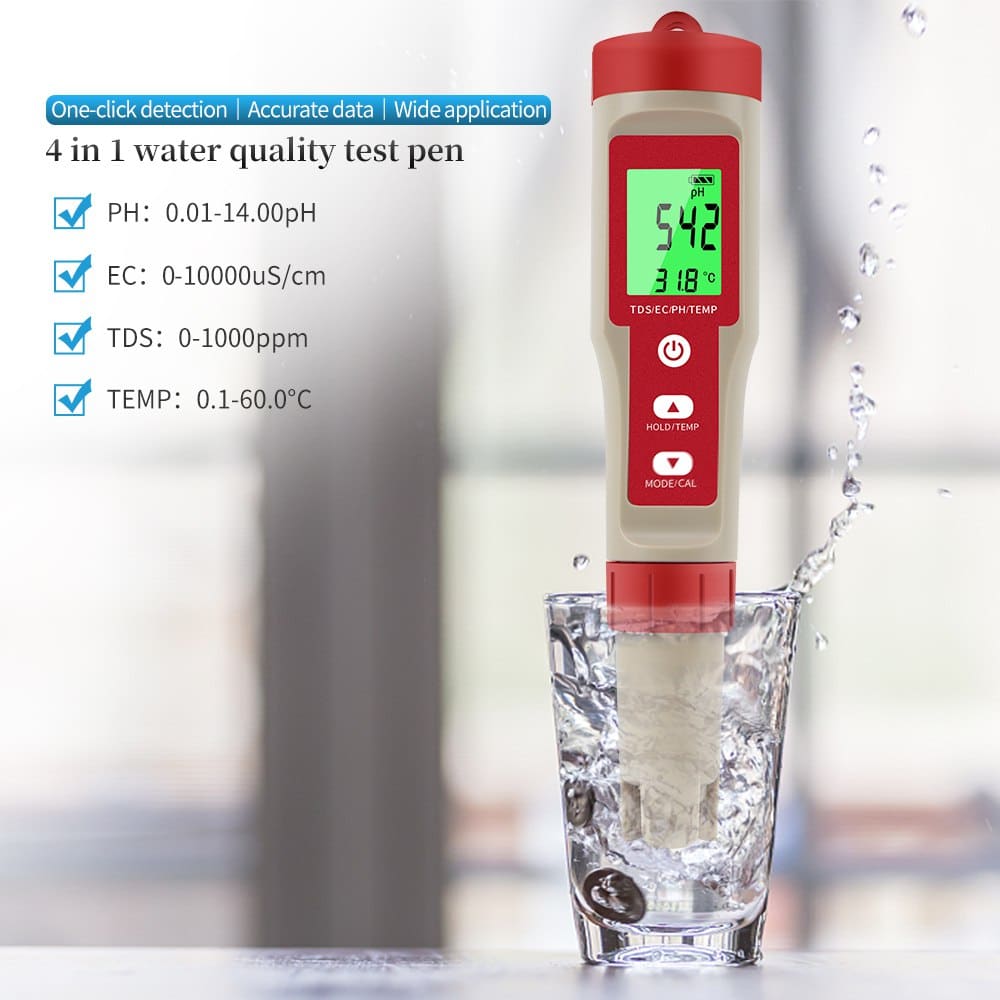 Measures Potential Hydrogen(pH), Electrical Conductivity(EC), Total Dissolved Solids(TDS), and Temperature simultaneouly.